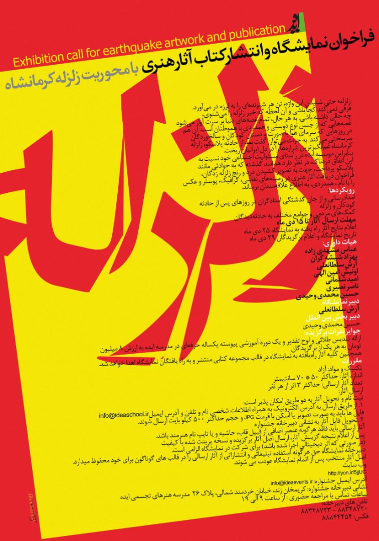 According to Idea Public Relations, the international exhibition “Kermanshah Earthquake Art Works” is currently being held at Idea Gallery; The art event was called by the Idea Art Institute last winter in the section of photos, posters and illustrations, and on Friday, April 6, the selected works of this event were exhibited in the new exhibition space of Idea Gallery.