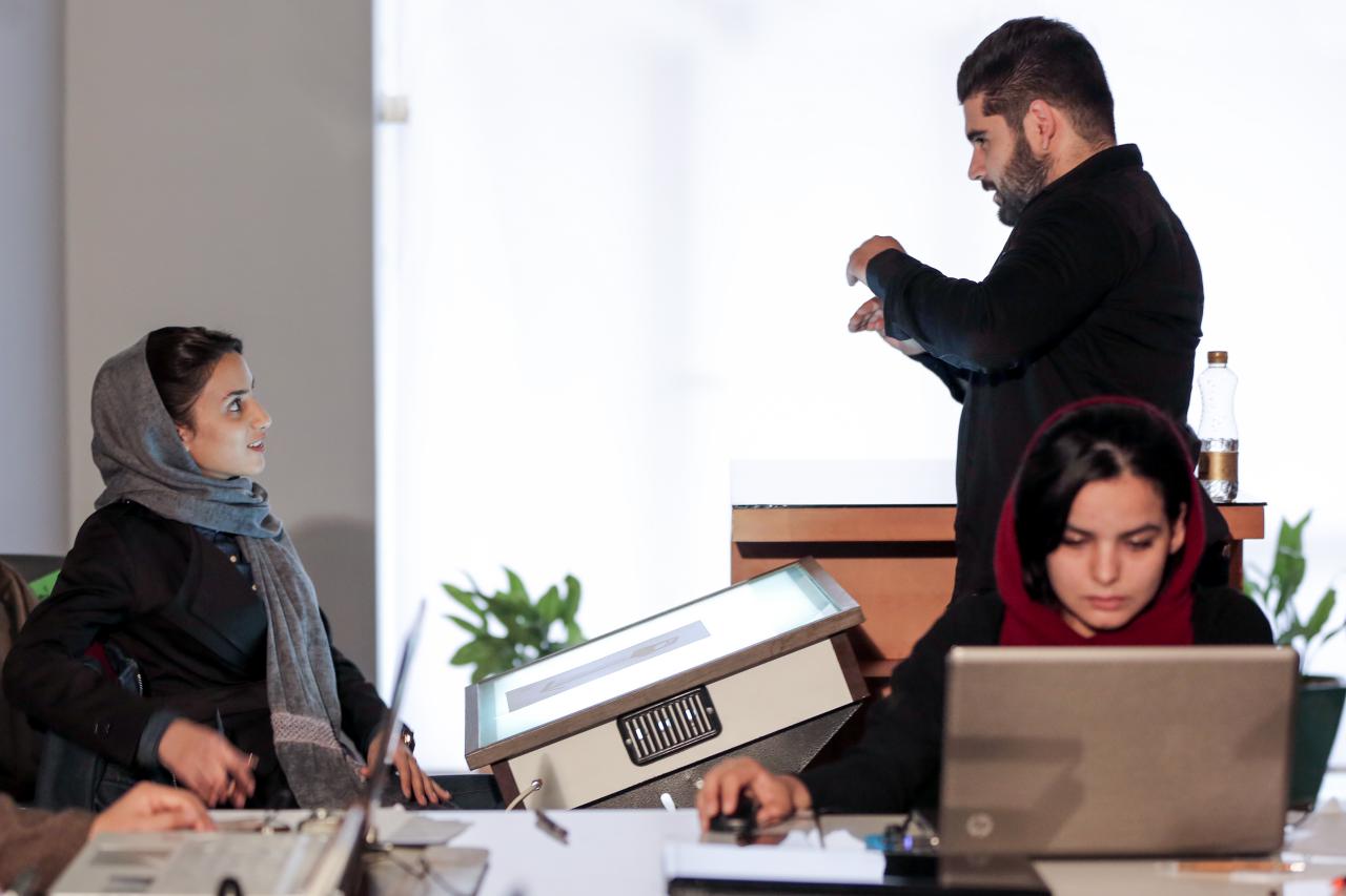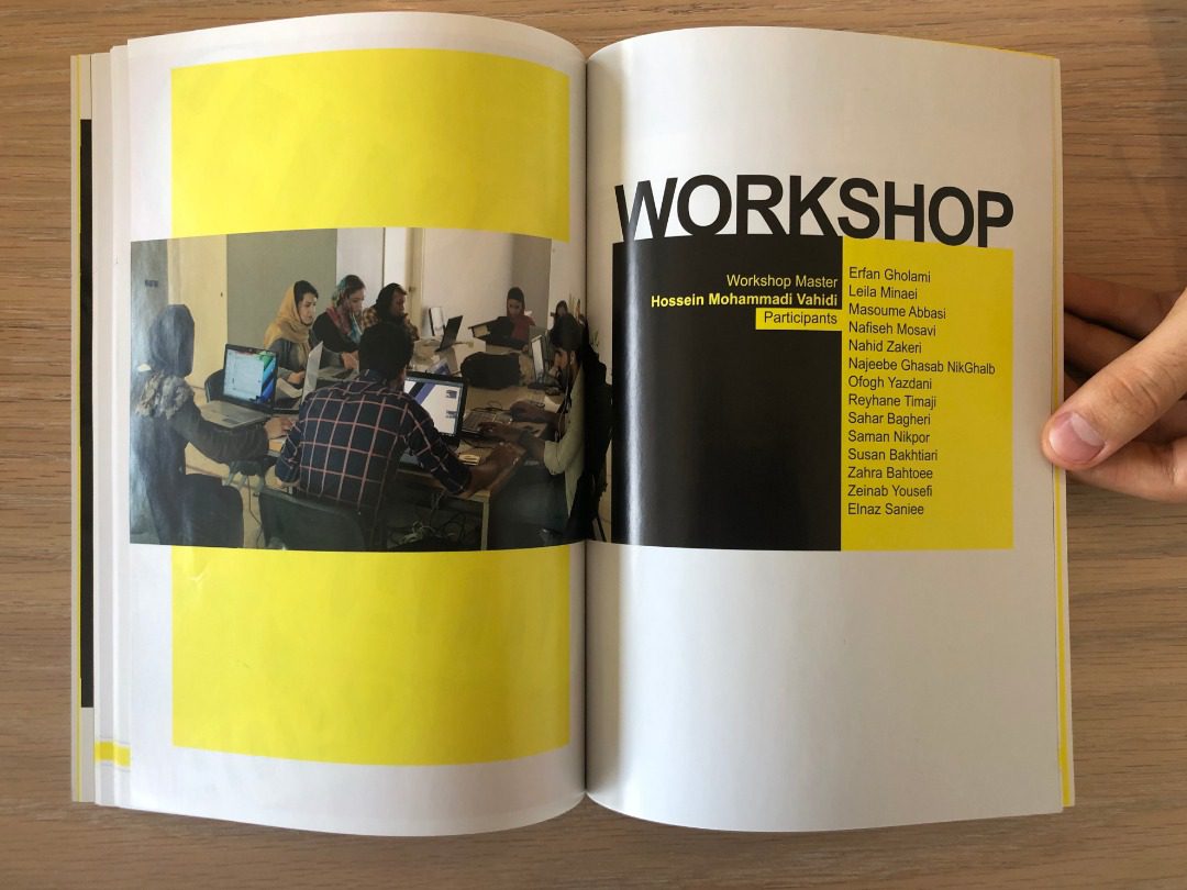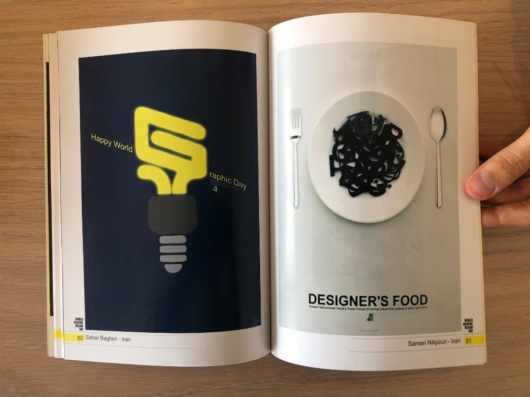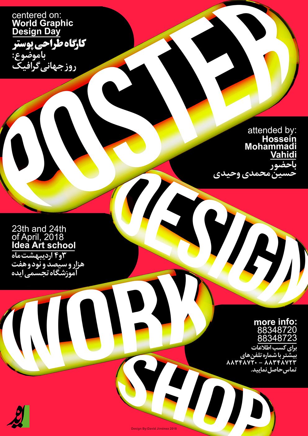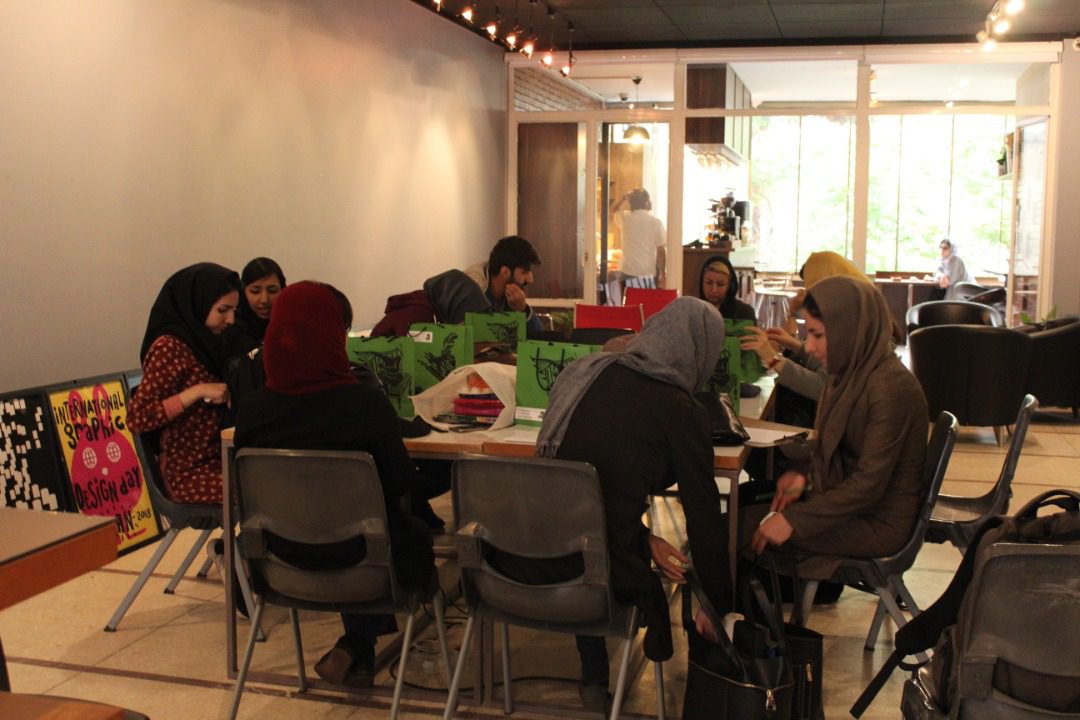 This two day workshop was held on April 3rd and April 4th for the theme of the World Graphic Design Day under the direction of Hossein Mohammadi Vahidi and 14 selected posters by Elnaz Saniee, Leila Minaei, Erfan Gholami, Nafiseh Mousavi, Masoume Abbasi, Najeebe Ghasab Nikghalb, Nahid Zakeri, Ofogh Yazdani, Reyhaneh Tamaji, Sahar Bagheri, Saman Nikpour, Susan Bakhiari, Zahra Bahtoee and Zaynab Yousefi at the Graphic Design day Exhibition at The Idea Gallery will be on the wall next to the exhibition section.